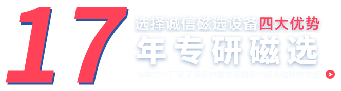 誠信機械主要生產研發和銷售水選磁選機系列、干式磁選機系列、強磁磁選機系列、除鐵磁選機系列、渦電流分選機系列等其他系列